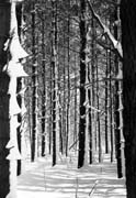 The final image of this wing takes us back to over 30 years ago again. A January winter storm had blanketed Massachusetts' South Shore area. Regrettably for photographers such as myself, these heavy winter storms, or "nor'easters", are followed almost immediately by strong, bitterly cold northwest winds, the legendary Montreal Express. These winds almost totally clear all snow from the limbs of trees, leaving rather bland scenes following these storms. On this particular January day in 1969, I was fortunate enough to be out as the storm was ending and for some reason the following winds were delayed and subdued. This picture was obtained in the woods adjacent to our house, maybe at 11:00 in the morning.